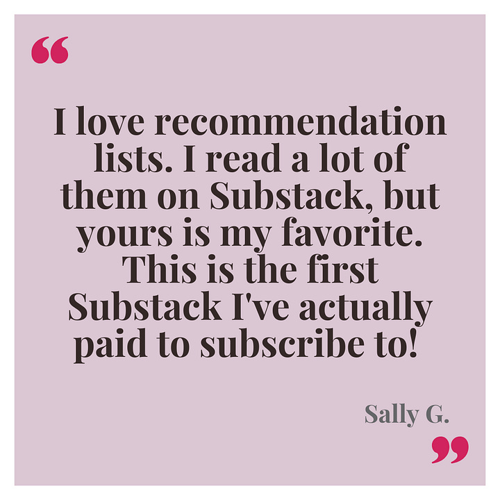 Paid subscribers receive exclusive Wednesday issues: a fast, 5-minute jolt of joy featuring practical life hacks, recommendations for what to read, watch, make, and do, plus a fabulous giveaway each month! That’s 12 chances to win an amazing prize, each year! Click here if you’d like to subscribe (it’s $30/year).