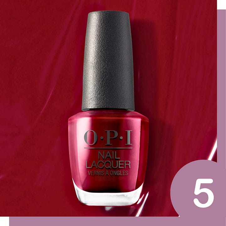 Nail polish. This deep pinkish/red has been my pedicure go-to for at least a decade—it works all year round!